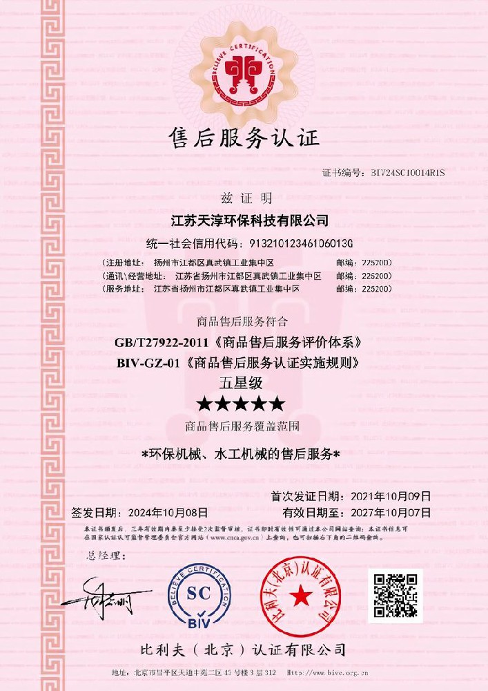 “五星级”售后服务认证