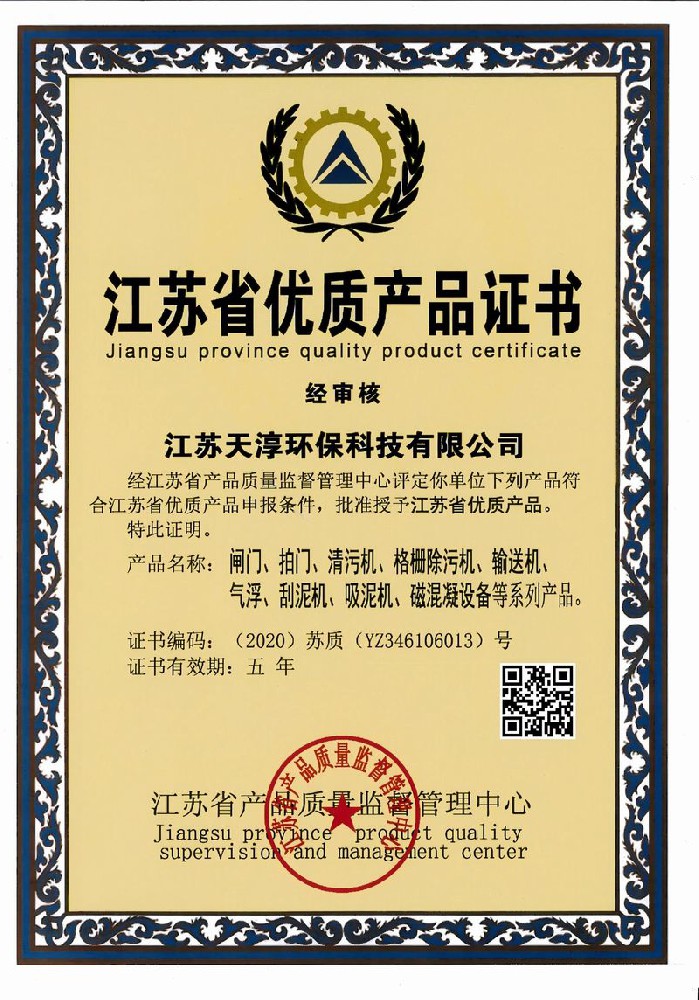 江苏省优质产品证书