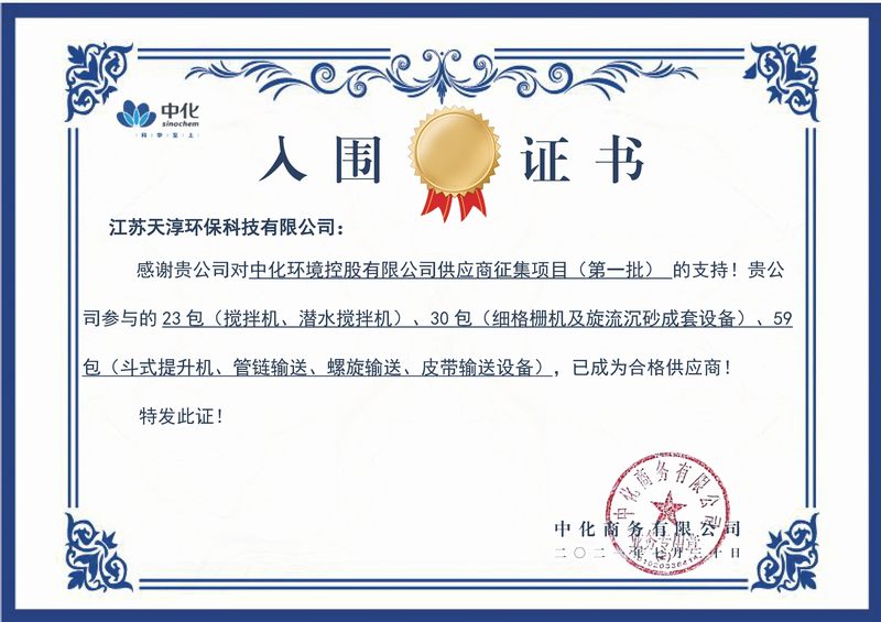 中化入围证书
